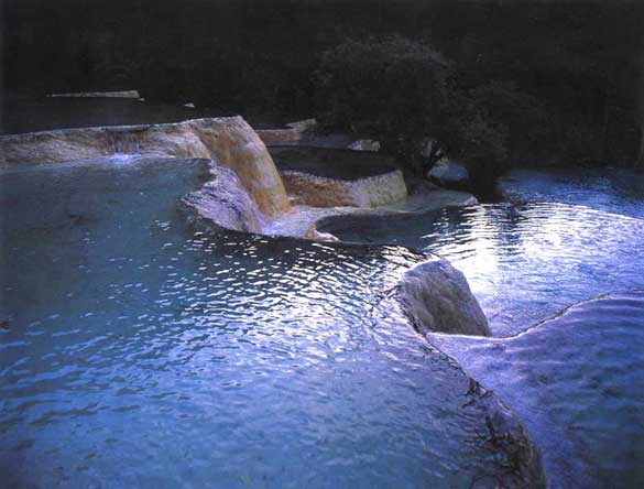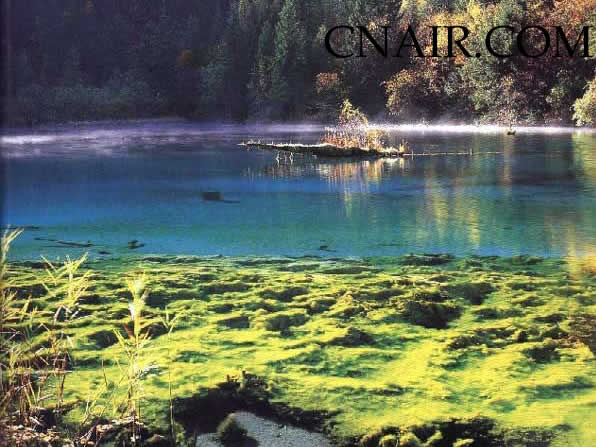 九寨溝內(nèi),清清碧水倒映藍(lán)天,魚(yú)翔蒼穹,鷹擊水底,呈現(xiàn)出謎一樣的童話(huà)世界。