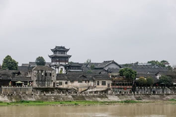 清末民初,湖廣、江西等省的商人也到此經(jīng)商并建造會(huì)館,精明的元通人在江邊筑起了場(chǎng)鎮(zhèn)。從元通鎮(zhèn)糧站的一道大門(mén)進(jìn)去,爬上一棟6層樓樓頂,從樓頂可以看到,大片青瓦屋頂,沿著文井江鱗次櫛比,臨河而居,中間一條街道穿行其中,好一派江南水鄉(xiāng)的味道。