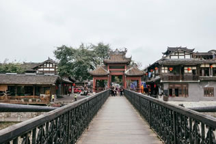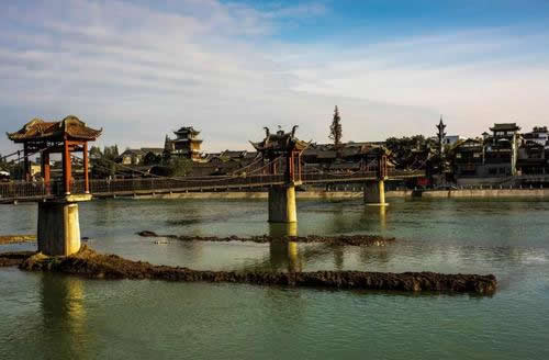 元通古鎮(zhèn)三面環(huán)水,一面環(huán)山。千百年來(lái),滾滾江水滋潤(rùn)著這方神圣的土地。江岸之外良田萬(wàn)頃,古鎮(zhèn)街頭院落森森。大小不一的街巷保存完好,木板房、青瓦房相連成片,遺存至今的古老民居,泱泱然散發(fā)著濃濃的古韻,挪動(dòng)著每一寸腳步,推開(kāi)每一扇窗欞,似乎都闖開(kāi)了歷史的大門(mén)自己也便,情不自禁、身不由己地也便走進(jìn)了過(guò)去,走進(jìn)了歷史。走進(jìn)元通深處,一幢幢民房,一條條街巷,摸著這歷史的邊邊角角,終于找到了心靈的歸宿。元通古鎮(zhèn)依山傍水一路修來(lái),鎮(zhèn)上的主要建筑都沿文井江拔地而起,上千戶(hù)人家臨河而居,水是他們的寄托,水是他們的立命之本,水與這里的人結(jié)下了不解之緣。所以,生活在這里的居民,家家的后院里都有石階可以下到河邊。古時(shí),鎮(zhèn)上的人出行大都靠水遠(yuǎn),家家戶(hù)戶(hù)都順著后門(mén)的石階進(jìn)進(jìn)出出,那情形有如走進(jìn)了以一處江南水鄉(xiāng)。在江河之上,一道鐵橋?qū)⒐沛?zhèn)與外灘緊緊地連在一起,時(shí)疏時(shí)密的鄉(xiāng)民在橋上來(lái)來(lái)去去,如履平地。這座橋名叫匯江橋,全長(zhǎng)164米、寬2、5米、高6米,造型古雅,除兩端橋樓,中間幾座帶歇山項(xiàng)的涼亭在寬闊的江面上頗顯風(fēng)致,橋下是文錦江,味江和泊河江在元通的匯流之處,流床寬闊,水流湍急,極為有利于水上航運(yùn)。據(jù)方志載,古運(yùn)通航,元通堪以重任,從此起航,須經(jīng)白馬渡,陳家渡、方渡,再順著崇州境內(nèi)最大最長(zhǎng)的河流――西河到新津龍王渡,然后進(jìn)入岷江,這段30余公里的航道乃為崇山十分重要水上交通。正是通過(guò)這條航道,元通境內(nèi)的土特產(chǎn),才得以遠(yuǎn)銷(xiāo)樂(lè)山、宜賓、瀘州等地,同時(shí)他們也從這條道上獲得了生活中的日用百貨,因元通是物流的集散地。同時(shí),外地客商也多聚匯于此,于是元通市井繁榮,生意興隆,到清咸豐年間終成大鎮(zhèn)。匯江橋雖造型古雅,但是一座現(xiàn)代橋,其修建年代竟為1986年,據(jù)載,最早的鐵索橋建于清光緒年間,長(zhǎng)達(dá)130余米,氣勢(shì)宏大壯觀,因晚清末年清明會(huì)時(shí)人多坍塌,其后人元通人又募資再建,造型如同今日,可惜毀于“文革”風(fēng)暴,視橋?yàn)榍楦屑耐械脑ㄈ耍鲇趯?duì)歷史的情感顧念,再次集資修建了索橋。