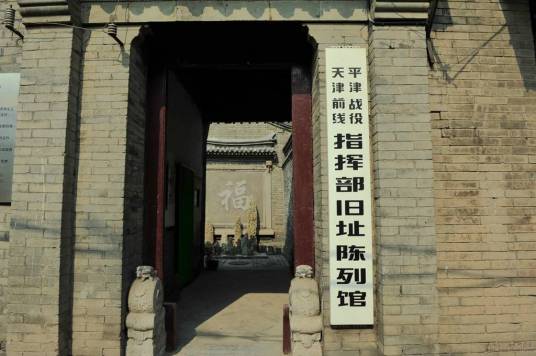 平津戰(zhàn)役天津前線指揮部舊址陳列館位于西青區(qū)楊柳青鎮(zhèn)藥王廟東大街4號,原為一所四合院式民宅,總面積為280平方米。1948年12月至1949年1月解放天津戰(zhàn)役時(shí),中國人民解放軍平津戰(zhàn)役天津前線指揮部曾設(shè)在這里。1949年1月14日上午10時(shí),劉亞樓司令員就是在這里發(fā)布了總攻命令,經(jīng)過29個(gè)小時(shí)的激戰(zhàn),全殲守?cái)?3萬余人。1月15日,天津獲得解放。1962年,河北省將該處定為省級文物保護(hù)單位;1982年,天津市政府重新公布為市級文物保護(hù)單位,并于1983年建立平津戰(zhàn)役天津前線指揮部舊址陳列館,當(dāng)年12月對外開放。