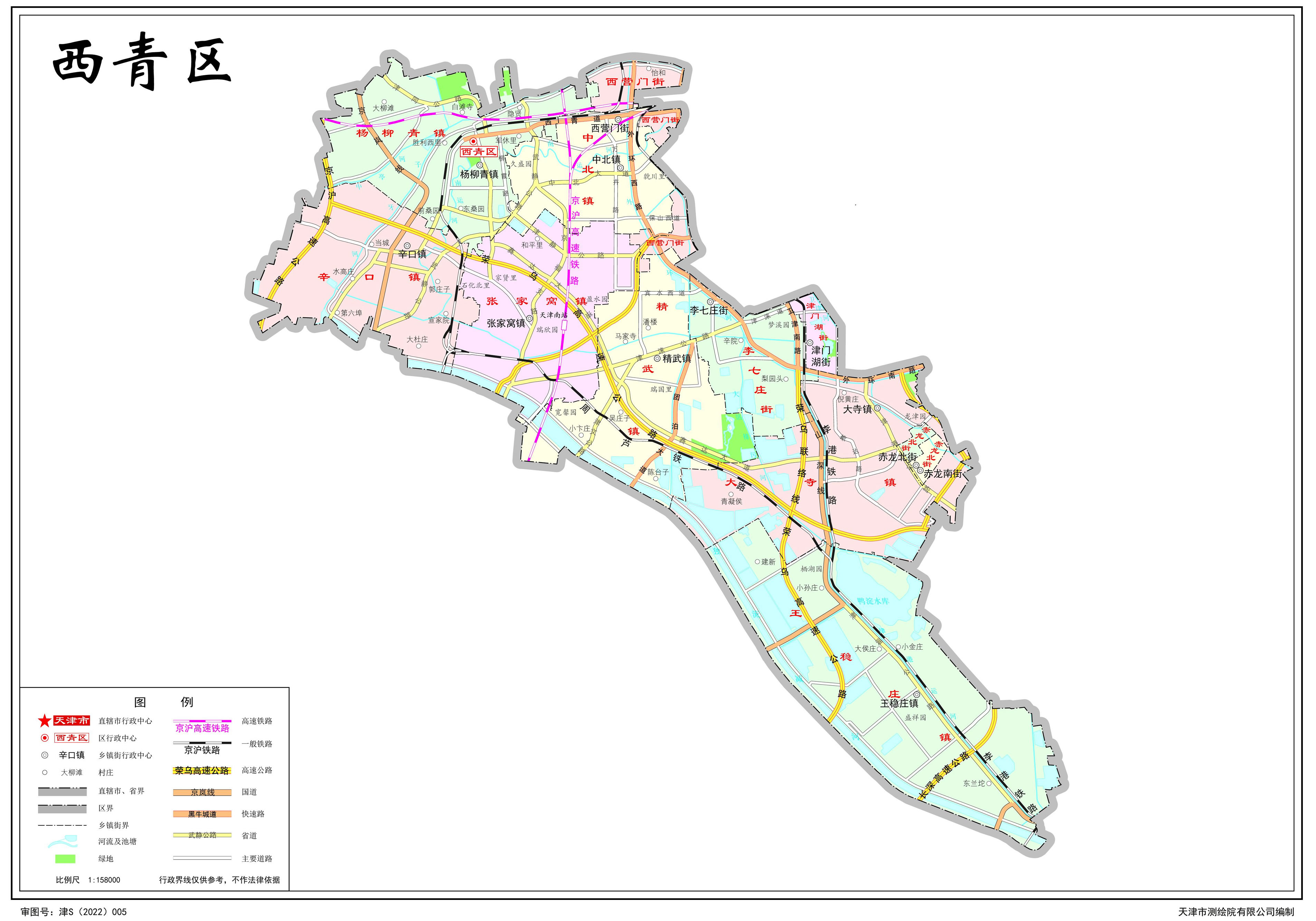 西青區(qū)轄5個(gè)街道、7個(gè)鎮(zhèn):