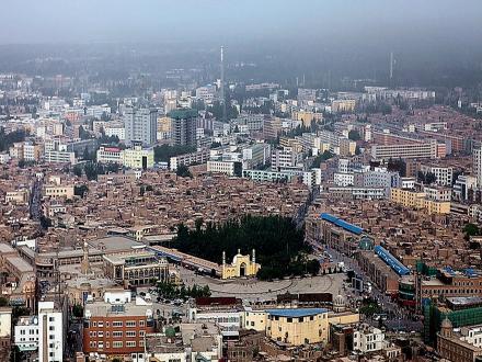清朝自1760年在喀什噶爾設(shè)參贊大臣之后,作為天山以南的政治、經(jīng)濟(jì)、文化和交通中心,喀什噶爾城人口激增,舊城區(qū)居住不下,開(kāi)始向今解放路以西拓展。1762年筑徠寧城,與舊城只隔不足1公里。到1839年,徠寧城與舊城之間的地帶已全建為民居,清朝駐喀什噶爾阿奇木伯克郡王祖赫爾。词窌(shū)中所稱(chēng)“阿肯木伯克早敦”)主持了擴(kuò)城工程,將城西墻移至今尤木拉克協(xié)海爾路,與原徠寧城相連,在今老郵電局處新辟南門(mén),稱(chēng)“庫(kù)木代爾瓦扎”(沙門(mén)),南關(guān)一帶成為繁華的手工業(yè)區(qū),形成了以艾提尕大清真寺為中心的一座新城。