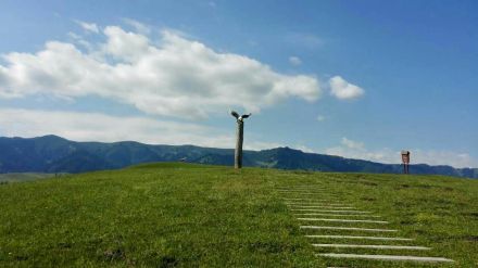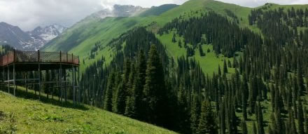哈薩克語為“美麗的山溝”,是進入河谷草原的第一站,擁有一山四景,白雪皚皚的山峰、茂密的森林、連綿起伏的山丘、平坦的草甸,是草原垂直自然景觀帶的窗口。其東側(cè)的山坡形似天山母親的耳朵,聆聽著大地的聲音,默默守護著天山,被稱之為“天山之耳”。西南側(cè)的山坡形似一匹昂首奔騰的駿馬,見者“馬到成功,飛黃騰達”被取名為“飛馬坪”。