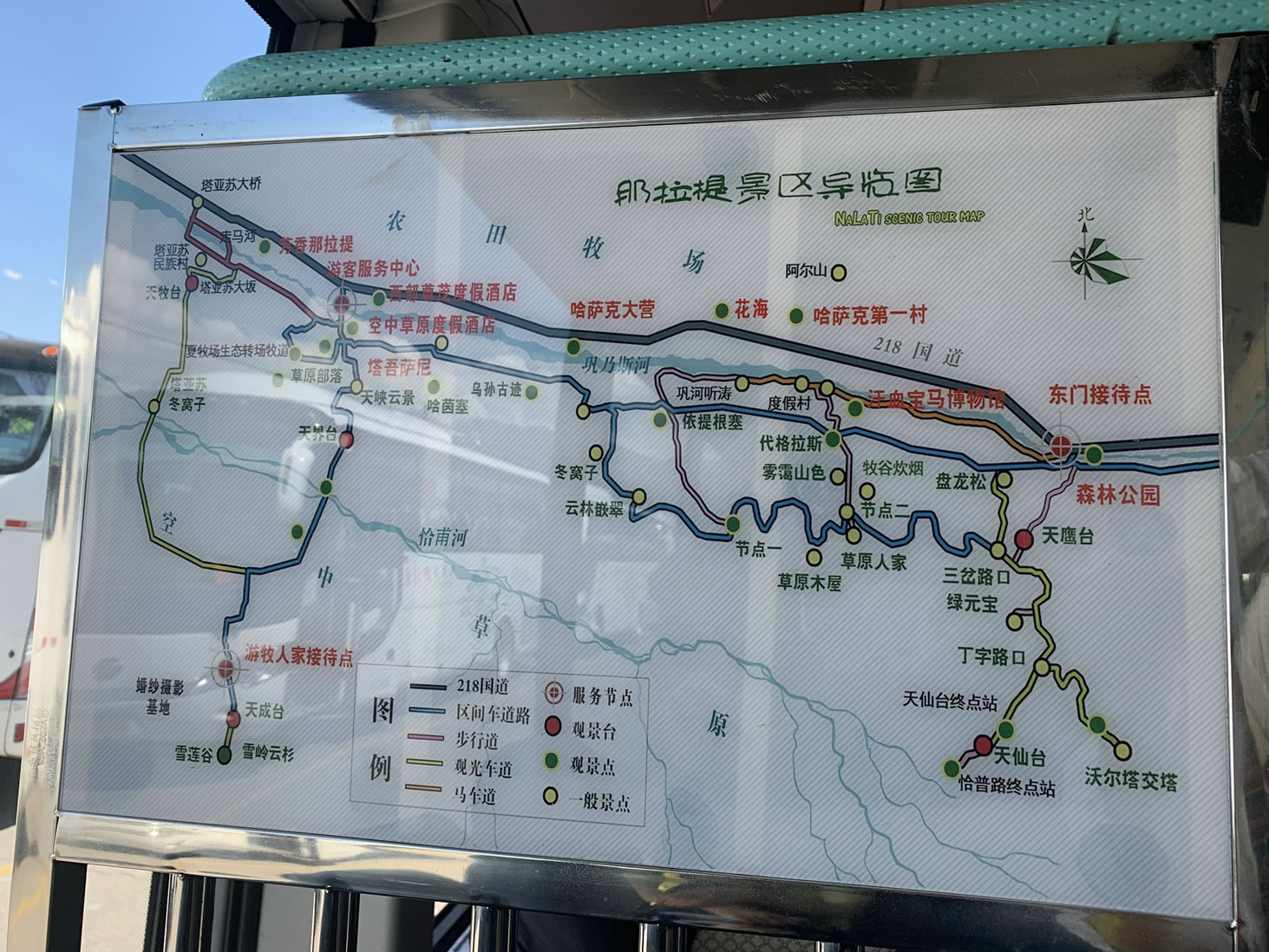 那拉提旅游風(fēng)景區(qū)內(nèi)集草原、溝谷、森林于一體,植被覆蓋率高,野生動物資源豐富,因自然生態(tài)景觀和人文景觀獨具特色,而被譽為“天山綠島”“綠色家園”“五彩草原”。主要景點有天界臺、游牧人家、塔吾薩尼(哈薩克語意為“美麗的山溝”)、天仙臺、沃爾塔交塔觀景臺、雪蓮谷等。