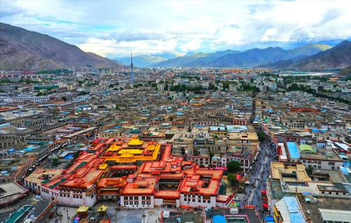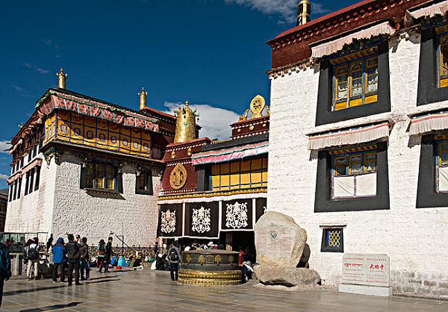 大昭寺,又名“祖拉康”、“覺康”(藏語意為佛殿),位于拉薩老城區(qū)中心,是一座藏傳佛教寺院,是藏王松贊干布建造,拉薩之所以有“圣地”之譽,與這座佛像有關(guān)。寺廟最初稱“惹薩”,后來惹薩又成為這座城市的名稱,并演化成當(dāng)下的“拉薩”。大昭寺建成后,經(jīng)過元、明、清歷朝屢加修改擴建,才形成了現(xiàn)今的規(guī)模。