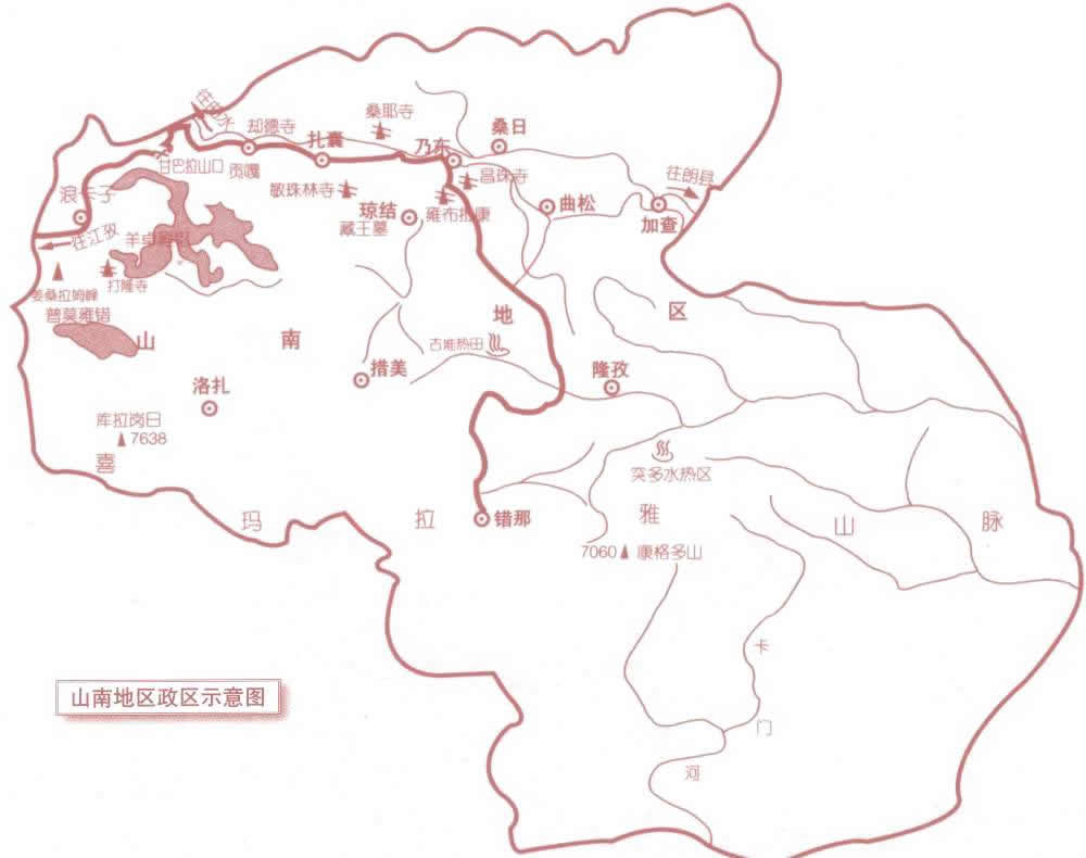 洛扎縣 面積5022.73平方千米,人口19865,政府駐洛扎鎮(zhèn),下轄2個鎮(zhèn)、5個鄉(xiāng)