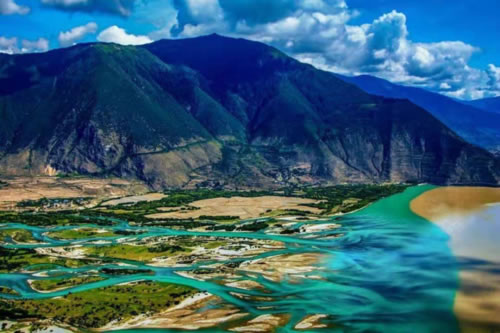 從空中或從西興拉等山口鳥瞰大峽谷,在東喜馬拉雅山無數(shù)雪峰和碧綠的群山之中,雅魯藏布江硬是切出一條筆陡的峽谷,穿越高山屏障,圍繞南迦巴瓦峰作奇特的大拐彎,南瀉注入印度洋,其壯麗奇特?zé)o與倫比。