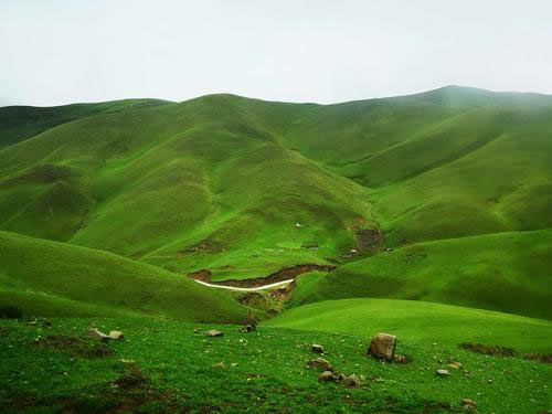 一眼眼山泉匯成一洼洼積水,一洼洼積水連成一道道溪流,隨意在草山之間流淌,曲曲折折,蜿蜒蛇行,時時有水往高處流的錯覺。