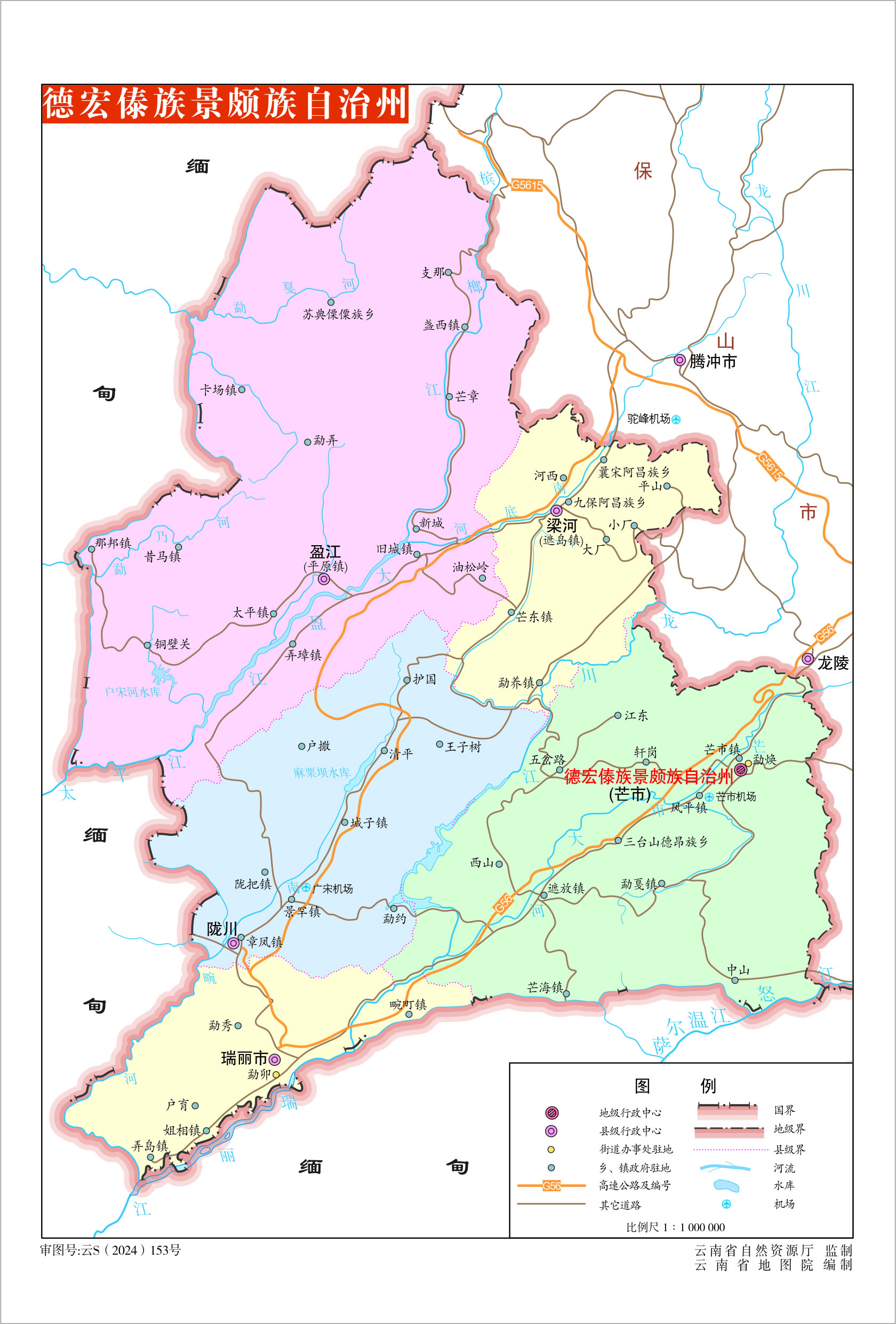 德宏傣族景頗族自治州轄2個(gè)縣級(jí)市、3個(gè)縣: