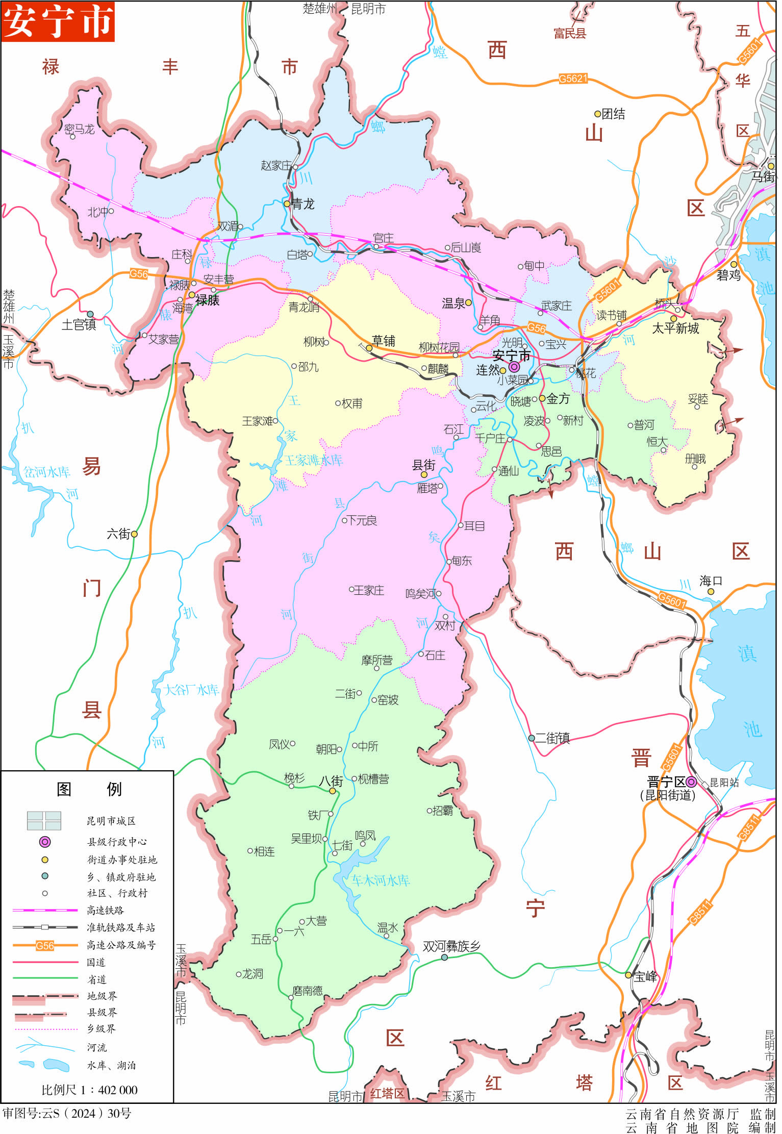 安寧市,云南省轄縣級市,由昆明市代管。位于昆明市西南32千米處,是通往滇西8個(gè)地州,并經(jīng)畹町直接與緬甸相連的交通重鎮(zhèn)。東北與西山區(qū)相連,東南接晉寧區(qū),西鄰玉溪市易門縣、祿豐市,總面積1301.81平方千米,平均海拔1800米。安寧市常住人口49.14萬人,城鎮(zhèn)化率達(dá)83.62%。