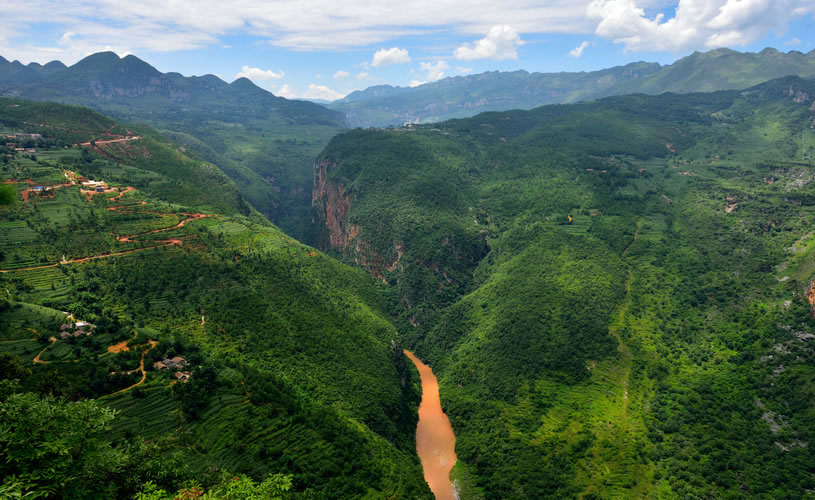 尼珠河大峽谷位于云南省宣威市普立鄉(xiāng)(尼珠河在上游叫可渡河,名為可渡,當地也稱泥豬河),上至木通河大橋,下至臘龍岔河,是北盤江上的一條支流,是宣威境內最恢弘、最秀美、最神奇的大峽谷。