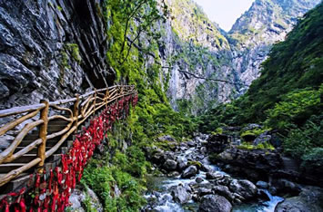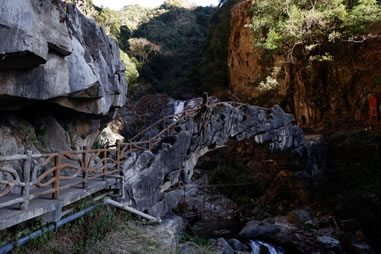 古代的文人墨客雖然游了石門(mén)關(guān),但卻不能進(jìn)入石門(mén)關(guān)縱深之處游覽,李元陽(yáng)驚呼石門(mén)內(nèi)“忽驚飆從空中飛墜,聲如訇雷,凜乎不可留,從者扶挽而出!毙煜伎涂疾斓绞T(mén)關(guān)口嘆道:“但門(mén)以內(nèi)則石崩水涌,路絕不通,乃復(fù)上就北岐躡磴”。二位先賢不能進(jìn)入石門(mén)縱深游覽,不能說(shuō)不是一種遺憾。隨著歲月的流逝,歷史的滄桑巨變,現(xiàn)代人能隨心所欲進(jìn)入石門(mén)縱深探幽走險(xiǎn),實(shí)在是一種福份。