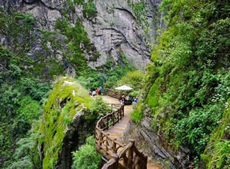 、俨叫杏温罚焊>墭颉埻鯊R——天開(kāi)石門(mén)——鶴峰亭——五道水服務(wù)區(qū)——枯木要塞——萬(wàn)獸谷——百步天梯——野生芭蕉林——七道水彩虹橋,全長(zhǎng)2500米;