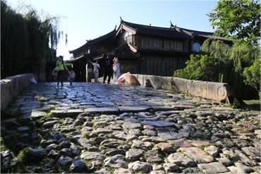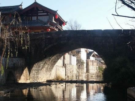 長25米、寬4.5米、高4米,全部由石塊壘砌,列為麗江古石橋之最,可見束河在麗江歷史上的經(jīng)濟文化格局中所占的重要地位。青龍橋的橋面經(jīng)過數(shù)百年風(fēng)雨的洗刷使它變得斑駁蒼老,卻不失它的英雄氣勢和莊嚴厚重感,站在這里,你也許會聽見馬蹄的聲音在回響。