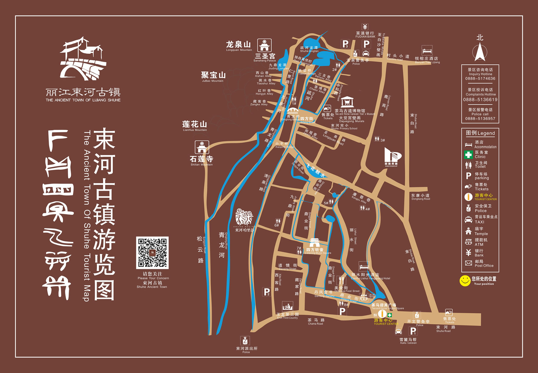 束河坐東朝西,背風(fēng)向陽,村后山林為玉龍山南下之余脈,山形秀麗,植被茂密,白沙巖腳院有鳳凰山,為麗江木氏發(fā)祥之地,至束河山形再變,呈祥瑞之象,堪輿家稱為“丹鳳含書之地”,預(yù)言文化昌盛,興旺發(fā)達。