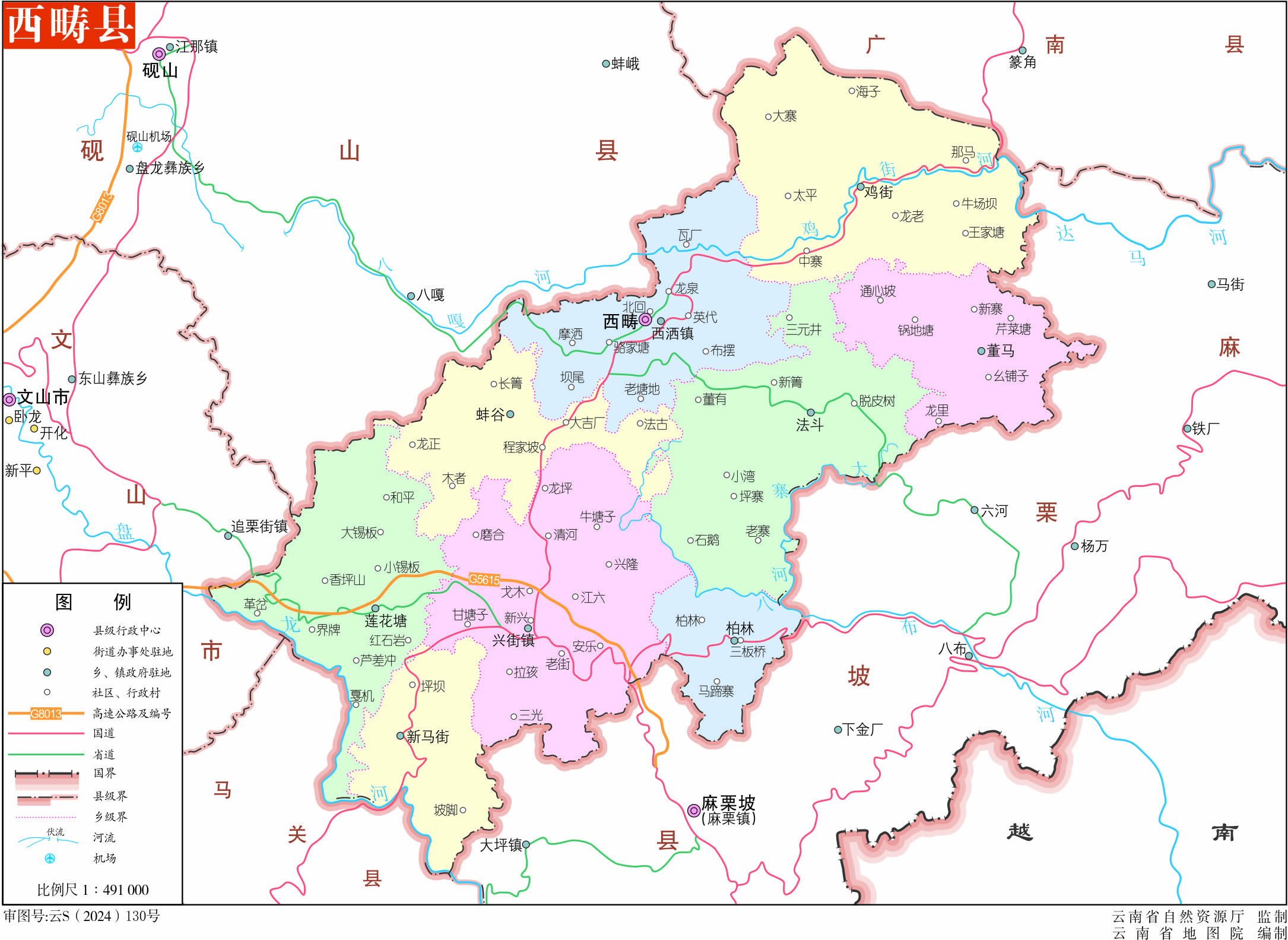 位置境域 西疇縣處在云南省東南部,文山壯族苗族自治州中部偏南,北回歸線(xiàn)橫貫縣境;東南接麻栗坡縣,西南隔盤(pán)龍河與馬關(guān)縣相望,西靠文山、硯山兩縣,東北以達(dá)馬河為界與廣南縣毗鄰;距省會(huì)昆明市265千米,公路里程480千米;距州府駐地開(kāi)化鎮(zhèn)46千米,公路里程經(jīng)蚌谷72千米,經(jīng)興街85千米?偯娣e1506平方千米。