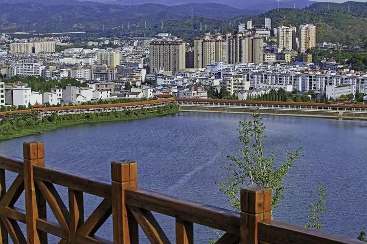 地形 境內(nèi)最高點(diǎn)為北部小街鄉(xiāng)甲浦老黑山頂雀窩尖山,海拔2608米,最低點(diǎn)是綠汁鎮(zhèn)南部爐房村旁易門與雙柏、峨山交界處的綠汁江面,海拔1036米。地形特征為東、北、西三面高山屏立,中部是溶蝕性盆地,東南面為中山河谷地帶,全境狀似馬蹄。江河沿岸受河流切割影響,較陡峭,山谷相間、地形復(fù)雜。