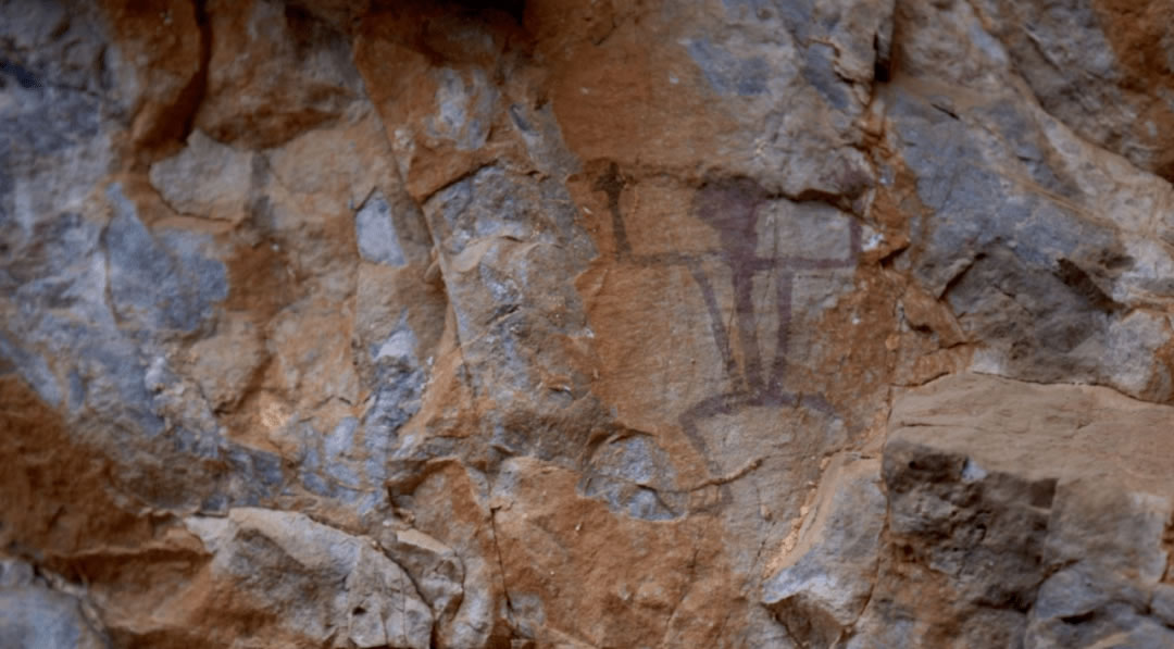 1985年發(fā)現(xiàn)的它克崖畫(huà)經(jīng)專家考證,成畫(huà)年代為距今三千年前后原始社會(huì)晚期,畫(huà)面描繪了古代人類的圖騰崇拜以及生產(chǎn)、生活情景,是少見(jiàn)的藝術(shù)珍品和研究古代人類社會(huì)的寶貴資料。崖畫(huà)位于青龍廠鎮(zhèn)它克村東北的扎營(yíng)峰南麓。崖畫(huà)長(zhǎng)19.5米,高3米,繪各種圖象92個(gè),畫(huà)用赭紅色畫(huà)成。崖畫(huà)之上200米,有一個(gè)水平溶洞,當(dāng)?shù)厝朔Q“陰賓洞”。洞內(nèi)高大寬敞,幽深,洞口向陽(yáng),避風(fēng),干燥,適宜穴居,推斷為崖畫(huà)人居住過(guò)。崖畫(huà)畫(huà)面反映的是人類對(duì)太陽(yáng)、星星、天體、自然的崇拜和對(duì)人類始祖——母親的崇拜和性崇拜。 1987年12月被云南省人民政府列為云南省第三批重點(diǎn)文物保護(hù)單位之一。