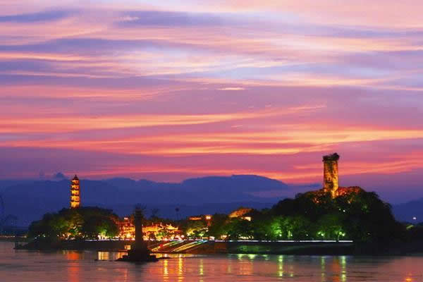 2006年6月,江心嶼燈光秀開始動工建設(shè),動用現(xiàn)代影射原理和多種手法,重點(diǎn)突出二塔一寺。