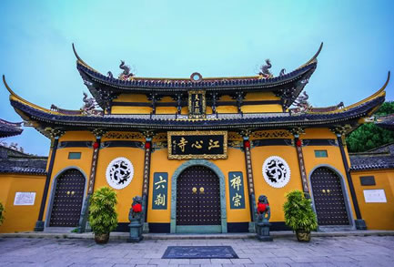 現(xiàn)存之江心寺為清乾隆五十四年(1789)重建,面積約2870平方米,分前、中、后三殿。前殿為天王殿,東西有長廊,兩端置鐘鼓樓。今宋代古鐘尚存。中殿為圓通殿,最為壯觀,供奉的是觀音菩薩,江心寺為全國32所觀音菩薩道場之一。殿內(nèi)檻聯(lián)匾額,琳瑯滿目。正柱聯(lián)為宋王安石撰并書。后殿三圣殿,殿額與對聯(lián)皆為弘一法師所書。寺院大門兩邊有題為宋王十朋撰書的疊字聯(lián):“云朝朝朝朝朝朝朝朝散,潮長長長長長長長長消”。由書法家方介堪正楷重寫。寺周古木參天,景色清幽。1983年列為全國對外開放142座重點(diǎn)寺院之一。