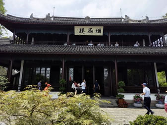 也稱大士閣,建于明朝萬歷十一年(1583),觀音閣 早年在這里面供奉觀音菩薩,用作祭祀場所。1937年大士閣曾被日軍的炮火炸毀,1986年又重建此閣。農(nóng)歷六月廿四日為荷誕(荷花生日,古稱觀蓮節(jié)),以前嘉興地方上早早地或自發(fā)、或商界集資精心制作各種荷花彩燈到南湖進(jìn)行放燈活動(dòng)。普通的荷花燈為木制底板,上面圍扎粉紅色半透明花瓣,勃勃怒放,花蕊可插蠟燭。是日,商界同仁或有錢人家包租了絲網(wǎng)船,泛舟游湖。船上設(shè)盛宴飲樂之外,有的還請了民樂隊(duì)隨船伴奏助興。煙雨樓大士閣歷來香火旺盛,但最盛的是六月廿四日,四鄉(xiāng)八圩的信徒會(huì)聚湖心島,敬香拜佛,同時(shí)一觀荷花燈盛況。是夜嘉興人幾乎傾城而出,涌向湖濱。湖里船上、煙雨樓上以及湖濱岸上人山人海。待天暗下來,無數(shù)只荷花燈點(diǎn)亮蠟燭,從船上、島上、湖邊放入水中,浮于碧波。花燈隨微風(fēng)細(xì)浪、人潮氣浪悠悠蕩漾。千萬盞游動(dòng)的荷花燈,映照著綠菱嫩荷,乘著習(xí)習(xí)涼風(fēng),載著陣陣歡笑,在幽幽絲弦聲中蕩漾。