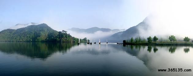 仙宮湖:崛立在云和縣緊水灘的浙南第一壩緊水灘水電站大壩,將滔滔甌江攔腰鎖住。在水電站建成的同時,浙南的茫茫林海中奇跡般地出現(xiàn)了一個巨大的人工湖緊水灘庫湖。1993年8月9日經(jīng)地區(qū)行署批準(zhǔn),改名為仙宮湖。放眼全湖,碧波蕩漾,晶瑩似鏡,周圍千姿百態(tài)的奇巖異峰、浩如煙海松濤,點(diǎn)綴湖邊的村莊、田野和山林,好似一幅色彩斑斕,絢麗多姿的山水畫。這里廣闊的湖面,煙波浩渺,水山相連,望不盡頭。與千島湖相比,雖無“千島”之態(tài)。但湖中島嶼正在一個個形成。隨著蓄水位的漸漸增高,將會出現(xiàn)更多“湖心之島”。那晶瑩澄碧的湖水在陽光的照射下,閃著瀲滟的波光,似一顆閃眼的明珠,鑲嵌在群山峻嶺之中。湖兩旁的松杉。翠竹掩映于湖唇,好似繡上一道花邊,君若泛舟湖中,其可謂“人行明鏡中”了。倘若天氣作變,更給景色增添妙異的變幻。晴天,頭上藍(lán)天萬里,腳下碧波千頃,點(diǎn)點(diǎn)白帆移動,轟轟船只掠過,舉目望去,山水一色;回首顧盼,卻置身于綠水青山之中。雨天,霧靄茫茫,層林碧水連成一片,人在湖面,有身置云霧瓊樓仙境之感。尤其在赤石、龍門一帶,水域?qū)掗,島嶼列布,湖區(qū)四周還有“九潭十八灣”、“夏洞天”、“龍老洞”、“蝴蝶洞”、“牛頭山”等勝景。仙宮湖不愧為特具魅力的旅游勝地。