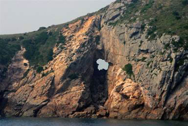 說起南麂列島的絕景,天然壁畫應(yīng)是“首絕”,這又是大自然杰作。位于三盤尾南部東側(cè)峭崖處,是原杭州大學(xué)張友良教授首先發(fā)現(xiàn)。畫壁寬約40米,高30余米,氣勢恢宏,層次分明,被專家譽(yù)為“國寶”和東海奇觀。就在礁石錯落,白浪排空處,高矗著一幅石屏風(fēng),整個巖面宛然是一幅天然山水畫,其中一尾大龍蝦栩栩如生,十分逼真。歷來山水畫家?guī)煼ㄗ匀唬殖Y澝雷匀痪拔餅椤疤扉_圖畫”。眼前,這天然壁畫給人帶來意外的美的享受。