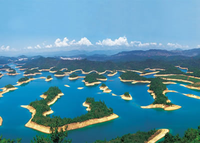 千島湖碧波萬傾,千島竟秀,群山疊翠,峽谷幽深,溪澗清秀,洞石奇異,還有種類眾多的生物資源,文物古跡和豐富的土特產(chǎn)品,構(gòu)成了享譽(yù)中外的島湖風(fēng)景特點。近年來,經(jīng)過大規(guī)模的改造和建設(shè),已形成了品位較高、內(nèi)涵豐富的羨山、屏峰、梅峰、龍山、動物系列、石林六大景區(qū)的14處景點。