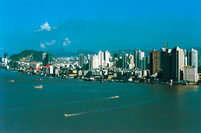 溫州市位于浙江省東南部,東瀕東海,南與福建省寧德市的福鼎、柘榮、壽寧三縣毗鄰,西和麗水市的縉云、青田、景寧畬族自治縣相接,北和東北與臺(tái)州市的仙居、黃巖、溫嶺、玉環(huán)四縣為界。地勢自西向東傾斜,西部屬浙南中山區(qū),迤東高度逐漸降低為丘陵地,東部是沿海平原。陸域面積12110平方千米,海域面積8649平方千米,海區(qū)負(fù)200米等深線以內(nèi)的面積6.67萬平方千米。
